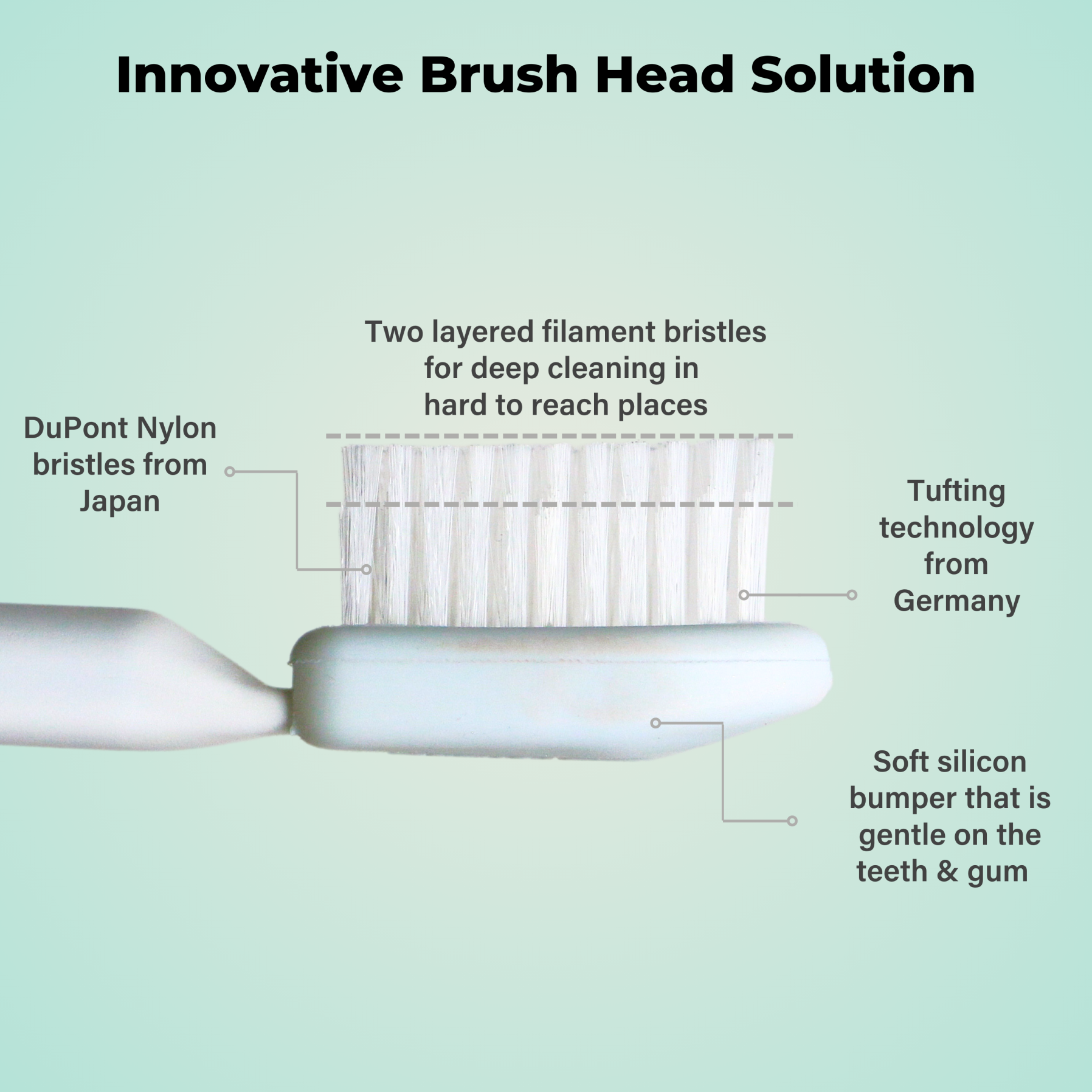 - Two layered filament bristles for deeper cleaning