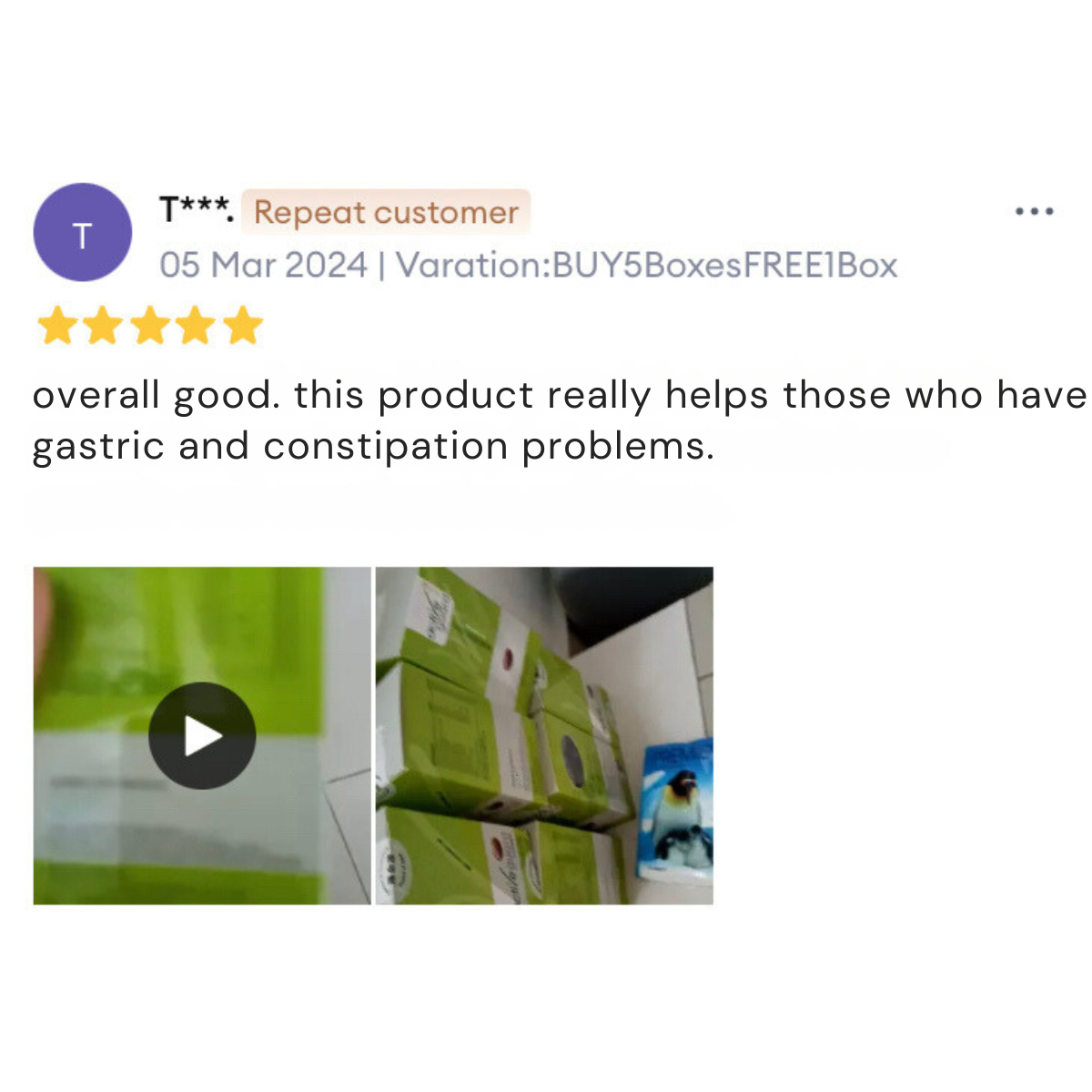 T*****Overall good. This product really help those who have gastric and constipation problems