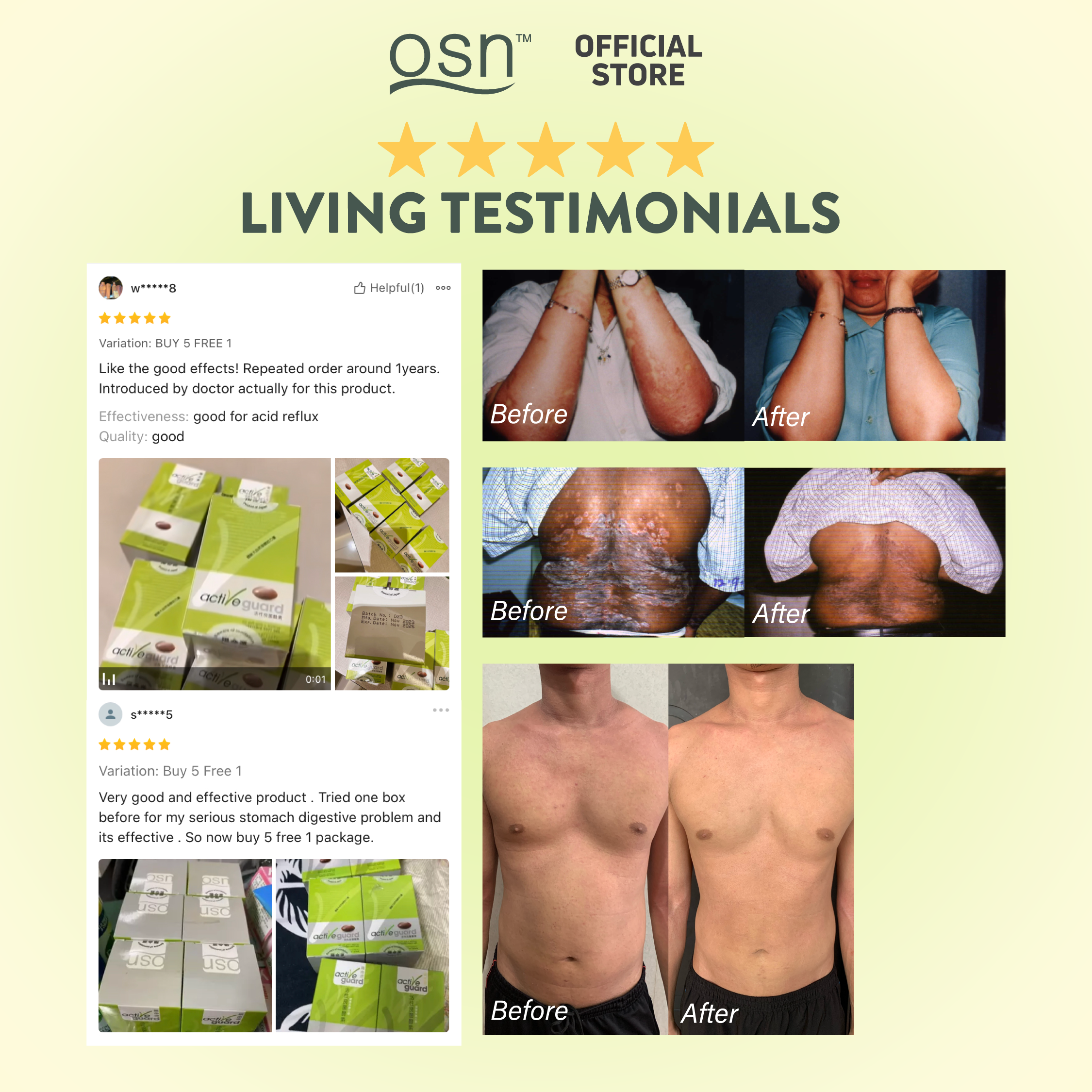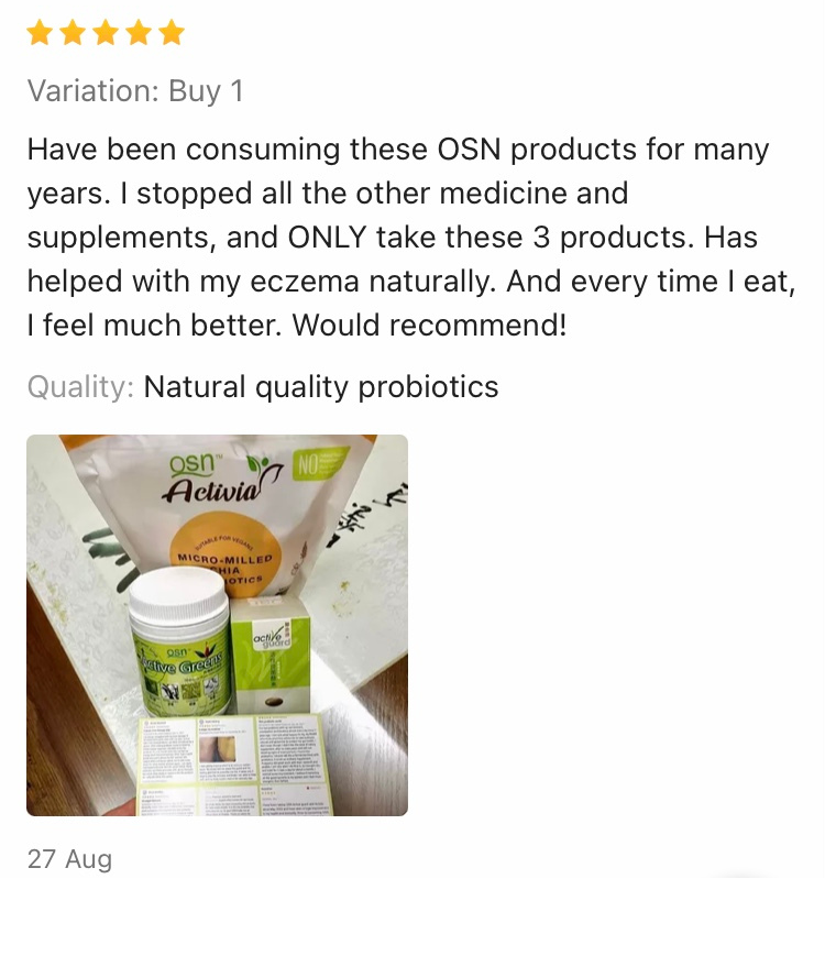 Have been consuming these OSN products for many years. I stopped all other medicine and supplements, and only take these 3 products. Has helped with my eczema naturally. And everytime I eat, I feel much better. Would recommend!