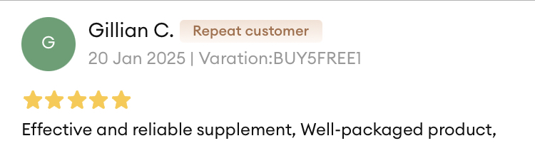 Gillian C.Effective and reliable supplement. Well-packaged product.