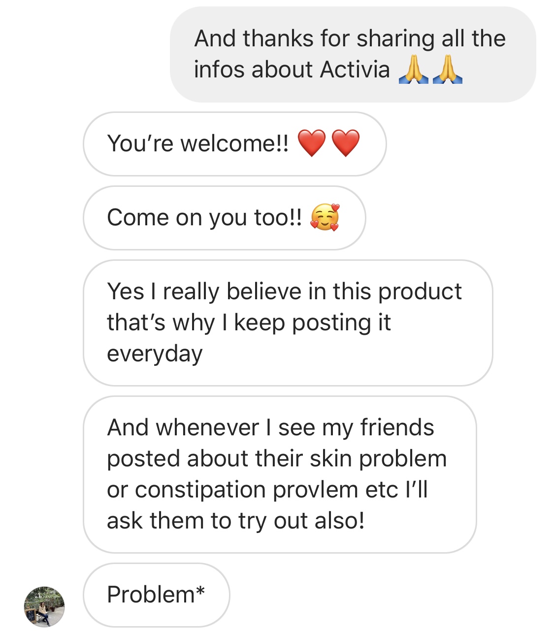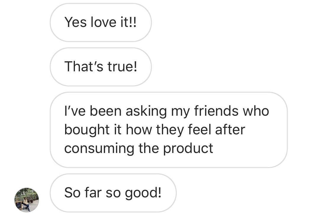 C********I really believe in this product that's why I keep on posting it everyday. And whenever I see my friends posted about their skin problem or constipation problem etc I'll ask them to try out also! I've been asking my friends who bought it how they feel after consuming the product. So far so good!