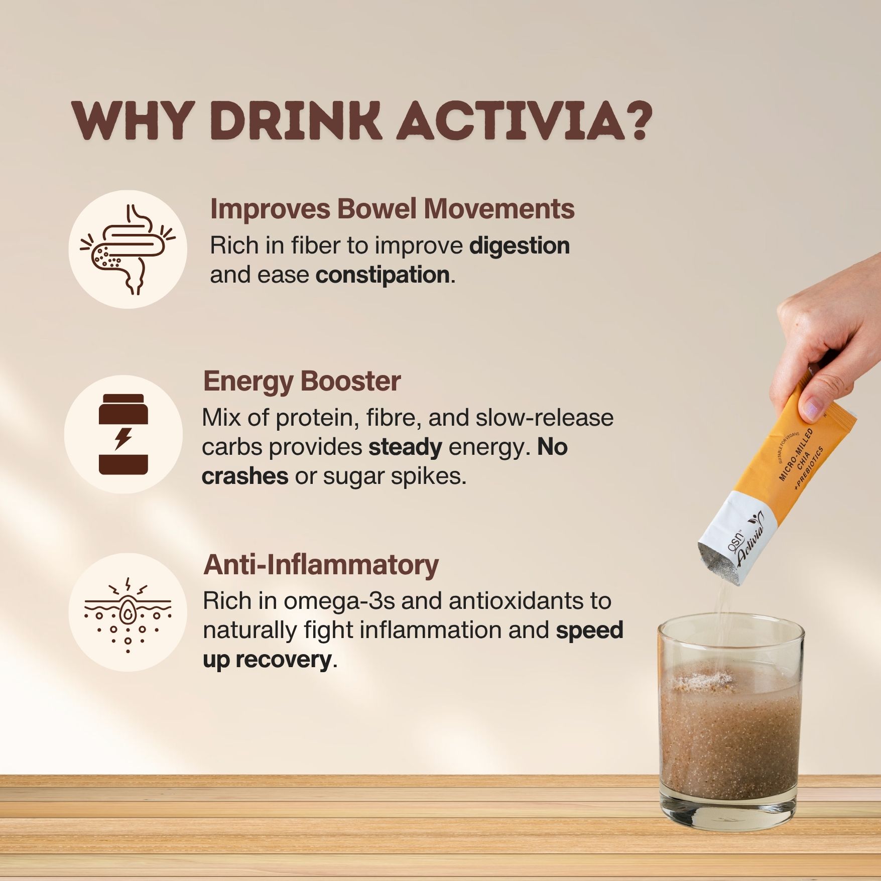 ✨ Want reduced inflammation, faster muslce recovery, and better digestion so you can feel your best every day? Whether you're at work, in the gym, or on the go, OSN Activia is your solution.